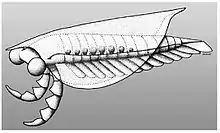 A hymenocarine that is thought to have been benthic feeders that moved mainly by walking and possibly used its biramous appendages to stir mud in search of food. They have been placed within the Hymenocarina, which includes other bivalved Cambrian arthropods.