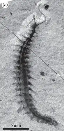 Worthenella Arthropoda Family Kootenichelidae An elongate arthropod of uncertain affinities, only known from a single specimen with 44 body segments with limbs.