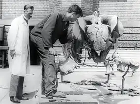 ![]() Mounted skeleton of Stahleckeria, a dicynodont therapsid recovered from Chiniquá in the 1920s by German paleontologists, in the University of Tübingen (1935). | |