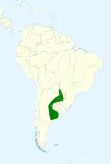 1. BirdLife International (2016). "Anthus chacoensis". IUCN Red List of Threatened Species. 2016: e.T22718606A94588791. doi:10.2305/IUCN.UK.2016-3.RLTS.T22718606A94588791.en. Retrieved 12 November 2021.