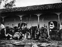 Panajachel natives getting ready for a maya ceremony in honor of the Catholic Cristo Negro of Esquipulas in 1892. Photograph by Alfred Percival Maudslay.[8]