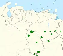The species occurs in the foothills of southern Guyana and Venezuela. It inhabits a variety of habitats including clearings, savannas with gallery woodland, cerrado, humid forest borders, coffee plantations, and various other habitats under anthropogenic influence.
