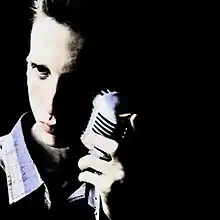 The artwork features a photograph of Bradford Cox taken by Mick Rock, who had previously shot photographs for albums such as Raw Power, The Madcap Laughs, and Transformer.[10] Cox met Rock through Michael Stipe and the two quickly became friends. The cover's artwork was meant to reflect the influence classic rock and rock and roll had on Cox when he recorded the album.[7][11] Unlike previous Atlas Sound album covers, Parallax's cover did not feature faces obscured by a lens flare. By not covering his face with a flare, Cox felt that the album cover effectively conveyed the loneliness he experienced creating the album.[7]