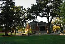 James and Daniel Blackburn donated two blocks to the city for a public park to be used for the pleasure of its citizens and visitors. Two exceptions were made to requirement that it be used for a public park - allowing the building of the Carnegie Library, and the conversion of the library to a museum. The grounds were laid out by a Mr. Redington and a planting day was held when each citizen set out his own donation. Originally, the whole park was hedged in by a fence of cactus, and in 1890, a bandstand was built with money raised by private theatricals.