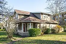 The Stratton House is a 1.5-story Vernacular Craftsman bungalow built in 1911 in Eugene, Oregon. Vernacular architecture is a designation that indicates local or folk use of style and materials. The house was designed and constructed by Louis H. E. Stratton for Sarah Patterson, a rental property owner. Patterson rented the house to Stratton until 1920, when records show he became the owner.[1]