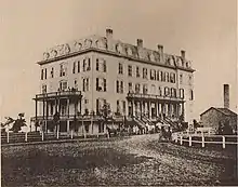 In 1887, Cornell built the Hyde Park Hotel (left, 1887–1963) on the former site of his home at Lake Park and East Hyde Park Boulevard.[22] The hotel was expanded in 1891.[22] In 1914, the hotel expanded (for a second time), which doubled its capacity to 300 rooms (see right).[22]