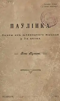 Paulinka (Belarusian: Паўлінка) is a comedy play in two parts by Belarusian poet and writer Yanka Kupala.[1]) Written in 1912, it was printed first time in 1913 in St. Petersburg by the publisher The Sun Will Peek into Our Window As Well (be:Загляне сонца і ў наша аконца) [2][3]