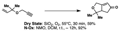 Recently, several groups have published work avoiding the use of toxic carbon monoxide, and instead generate the cyclopentenone carbonyl motif from aldehydes, carboxylic acids, and formates. These examples typically employ rhodium as the organometallic transition metal, as it is commonly used in decarbonylation reactions. The decarbonylation and PK reaction occur in the same reaction vessel.[44][45]