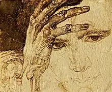 During the years 1913 to 1915, Filonov was close to Vladimir Mayakovsky, Velimir Khlebnikov, and other futurists. He co-illustrated Khlebnikov's Selected Poems with Postscript, 1907–1914 alongside Kazimir Malevich during this time.[1] In the autumn of 1916, he enlisted for service in World War I, and served on the Romanian front. Filonov participated actively in the Russian Revolution of 1917 and served as the Chairman of the Revolutionary War Committee of Dunay region.