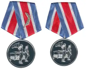 The Peace Prize Medal (Danish: De Blå Beretters Fredsprismedalje) was instituted in 1995 by Queen Margrethe II and may be awarded to any Dane who has completed a tour of duty on a UN mission and has received a medal for it. UN veterans are allowed to apply for the medal themselves thus making this the only Danish medal that the recipient himself can apply for.[1]
