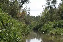 Pematang Gadung is a village in the sub-district of Matan Hilir Selatan, Ketapang District, West Kalimantan, Indonesia. The village is located 30 km from the district capital and is the only village in the district that still has a natural peat-swamp forest. The forest has a depth range of 3–7 m and an area in excess of 14,000 hectares. It is rich in flora and fauna including orangutans, proboscis monkey, Maroon leaf monkey, silvery lutung, long-tailed macaques, sun bears, Horsfield's tarsier, Large flying fox, deer, crocodiles and more than 250 species of birds, and more than 30 species of orchid.
