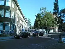 Scheepmakersstraat in The Hague in 2008. Pension de Vogel was located on the spot of the building on the right.