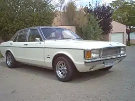 Introduced in 1973 the Ford Granada V8 has been the only model by Basil Green Motors not getting the name Perana. The engine was the Windsor V8 with 302 cui (5 litres). Transmission has been automatic or manual. With a top speed of 207 km/h and an acceleration of 7.8 seconds from stand to 100 km/h the car became the favourite of Ford's chairman Lee Iacocca. Ford Cologne bought two of these cars to explore if they were suitable for the European market. The oil price shock ended these plans.