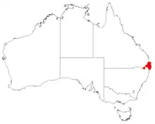 This persoonia grows in heath, forest and rainforest between Pimpama and Tamborine Mountain in south-east Queensland and south to Evans Head in New South Wales.[2]