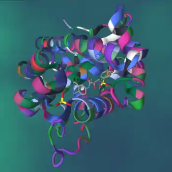 - ↑ Mast N, Zheng W, Stout CD, Pikuleva IA (February 2013). "Binding of a cyano- and fluoro-containing drug bicalutamide to cytochrome P450 46A1: unusual features and spectral response". The Journal of Biological Chemistry. 288 (7): 4613–4624. doi:10.1074/jbc.M112.438754. PMC 3576067. PMID 23288837.