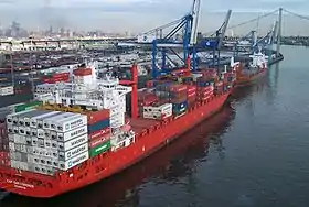 Generally the term applies to the publicly owned marine terminals located within Philadelphia city limits along west bank of the river. These terminals are managed by the Philadelphia Regional Port Authority, PhilaPort,[2] an agency of the Commonwealth of Pennsylvania. The term is sometimes used for Delaware River port complex to collectively refer to the ports and energy facilities along the river in the tri-state PA-NJ-DE Delaware Valley region. They include the Port of Salem, the Port of Wilmington, the Port of Chester, the Port of Paulsboro, the Port of Philadelphia and the Port of Camden.[3] Combined they create one of the largest shipping areas of the United States. In 2016, 2,427 ships arrived at Delaware River port facilities: Fruit ships were counted at 577, petroleum at 474, and containerized cargo at 431.[4]