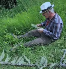 ![]() Philippe Clerc in the Allondon valley, Switzerland, studying Usnea specimens | |