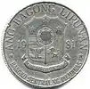 From 1975 to 1982, a new one peso coin was issued. The obverse now bears the inscription 'Republika ng Pilipinas' and a portrait of Rizal now faced to the right. The year of minting, the inscription 'Ang Bagong Lipunan' and the official coat of arms of the Philippines, are all on the reverse.