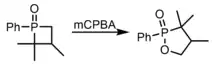 Insertion of oxygen into the P-C bond of a phosphetane oxide is done with mCPBA and proceeds via a currently unknown mechanism with unusually high regioselectivity for the less substituted carbon.[30][31]