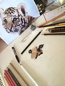 When an artist's ability to recall images is lacking, photo-referencing is a useful skill and especially useful when the goal is to replicate an image with great detail. Artists may use a lightbox as an aid in photo-referencing. Additionally, the use of the grid-method in photo-referencing has gained popularity due to its straightforward nature. The grid-method begins by drawing a grid on the reference photo, and then copying that grid lightly onto the medium of choice that the drawing will be completed on. By focusing on one block in the grid at a time, artists are able to recreate the image much more precisely.