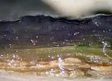 Phototrophic biofilms are microbial communities generally comprising both phototrophic microorganisms, which use light as their energy source, and chemoheterotrophs.[1] Thick laminated multilayered phototrophic biofilms are usually referred to as microbial mats or phototrophic mats (see also biofilm).[2] These organisms, which can be prokaryotic or eukaryotic organisms like bacteria, cyanobacteria, fungi, and microalgae, make up diverse microbial communities that are affixed in a mucous matrix, or film. These biofilms occur on contact surfaces in a range of terrestrial and aquatic environments. The formation of biofilms is a complex process and is dependent upon the availability of light as well as the relationships between the microorganisms. Biofilms serve a variety of roles in aquatic, terrestrial, and extreme environments; these roles include functions which are both beneficial and detrimental to the environment. In addition to these natural roles, phototrophic biofilms have also been adapted for applications such as crop production and protection, bioremediation, and wastewater treatment.[1][2]