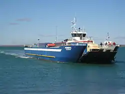 The Pionero is a ferry operating in Tierra Del Fuego owned and run by the Chilean firm Transbordadora Austral Broom S.A. It serves the Strait of Magellan between Punta Delgada and Punta Espora across the Primera Angostura.