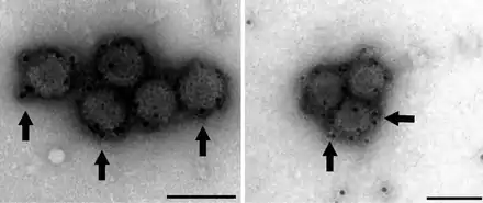 - ↑ Miyazaki N, Uehara-Ichiki T, Xing L, Bergman L, Higashiura A, Nakagawa A, et al. (November 2008). "Structural evolution of reoviridae revealed by oryzavirus in acquiring the second capsid shell". Journal of Virology. 82 (22): 11344–53. doi:10.1128/JVI.02375-07. PMC 2573255. PMID 18787002.