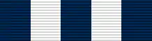 A silver and gold-plated 38mm Maltese Cross with, at the centre a gold lion and spear police crest on a circle of white enamel, surrounded by the words in gold lettering "For Distinguished Police Service" on a blue background. The reverse is plain and carried the name of the recipient.[4] The ribbon is two white bars on a dark blue background. ![]()