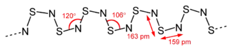 The material is a polymer, containing trivalent nitrogen, and divalent and tetravalent sulfur. The S and N atoms on adjacent chains align.[2][13][14] Several resonance structures can be written.[15]