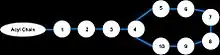Polymyxins are a group of cyclic non-ribosomal polypeptide (NRPs) which are biosynthesized by bacteria belonging to the genus Paenibacillus. Polymyxins consist of 10 amino acid residues, six of which are L-α,γ-diaminobutyric acid (L-DAB). The DAB residues cause polymyxins to have multiple positively charged groups at physiological pH. Seven amino acid residues form the main cyclic component, while the other three extend from one of the cyclic residues as a linear chain terminating in either 6-methyloctanoic acid or 6-methylheptanoic acid at the N-terminus. During cyclization, residue 10 is bound to the bridging residue 4.[9] The amino acid residues and DAB monomers are generally in the L (levo) configuration, however certain strains such as P. polymyxa PKB1 have been observed to incorporate DAB with the D (dextro) configuration at position 3 producing variations of polymyxin B.[10]