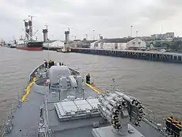 The Port of Maputo, also called the Maputo-Matola port complex, is a Mozambican port located in the cities of Maputo and Matola. They are installed in Maputo Bay, on the north bank of the Espírito Santo estuary, which is separated from the Mozambique Channel by the islands of Inhaca and Portugueses and by the Machangulo peninsula.