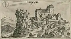 The remains of the Romanesque Ljubek Castle (or Lebek Castle), probably dating to the 11th century and first mentioned in written documents dating to 1220, can be found south of the settlement. The castle was destroyed in the peasant revolt of 1515 and was later rebuilt. Today, it is only a ruin.[4]