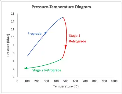 - Near-isobaric cooling after the peak (Retrograde metamorphism)[2]