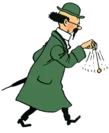 In contrast to his unquestionable scientific merits, Calculus is a fervent believer in dowsing, and carries a pendulum for that purpose. Hergé himself was a believer in the subject: dowser Victor Mertens had used a pendulum to find the lost wedding ring of Hergé's wife in October 1939.[4]