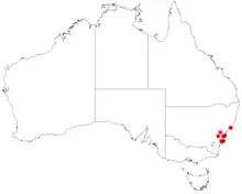 Villous mint-bush grows in forest and shrubland on the coast and nearby ranges between Nelson Bay and the Beecroft Peninsula.[3][8]
