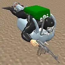 The Protei-5 (Протей-5) is a small Russian one-man diver propulsion vehicle often used by Russian commando frogmen. It is battery electric powered, using six non-sealed lead–acid batteries.[1] It clips on under the diver with a clip over each shoulder and one up between his legs. Its casing is aluminium. It was intended to be clipped onto the outside of a submarine; near the operation site the frogmen would airlock out underwater and unhitch their Protei 5's and ride them to the operation site. It seems to have been intended to be ridden fast and far rather than for complicated maneuvering.