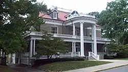 Purinton House is a historic home associated with the West Virginia University and located at Morgantown, Monongalia County, West Virginia. It was built in 1904, and is a 2+1⁄2-story masonry dwelling with Classical Revival and Colonial Revival style features. It features a large wraparound porch whose hip roof is supported by Ionic order columns. The porch roof is topped by a balustrade. The roof is topped by a balustraded deck and widow's walk. It served as the on-campus residence for university presidents from 1905 to 1967. On November 2, 1911, President William Howard Taft delivered the address "World Wide Speech," from the front porch of Purinton House.[2]