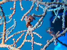 - ↑ Smith, Richard E. "Hippocampus bargibanti". Ocean Realm Images. Archived from the original on 13 April 2016. Retrieved 31 October 2012.
