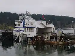 The BC Ferry terminal is located at Quathiaski Cove on the island, connecting to Campbell River on Vancouver Island. Each day, the ferry makes 18 round trips. Taxi service is available on the island. Flights from Vancouver stop at Campbell River and District Airport (YBL).[15][16]