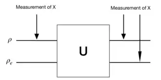Where is the mean value of the observable in before cloning, is the mean value of the observable in after cloning, and is the mean value of the observable in after cloning. Note that the cloning machine has no dependence on because we want to be able to clone the expectation of the observables for any initial state. It is important to note that cloning the mean value of the observable transmits more information than is allowed classically.[6] The calculation of the mean value is defined naturally as:[6]