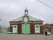 Juma Mosque[11] was built in the 19th century. The mosque was built from the red brick and it was erected in 1802. It is also called "Jama". This mosque was constructed in typical Quba province style mosques. The brick for the mosque were made in the village of Igryg. In appearance it resembles a faceted cylinder, and it's shaped like a regular octagon.[12] Inside of the mosque there is a big hall crowned with a huge 16 m diameter dome.[13]