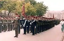 The first Colonel was Sir Winston Churchill: after his death in 1965 Cornets from the Regiment stood vigil over his catafalque in Westminster and carried his coffin to the funeral train and to the graveside.[29] Prince Philip was colonel-in-chief throughout the life of the regiment.[2]