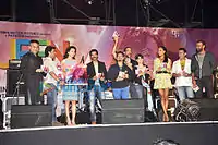 Trivedi along with the cast members at the music release of the film at the Kala Ghoda Arts Festival in Cross Maidan, Mumbai.