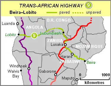Together with the R5 Highway, which runs from Harare to Mutare, the R3 forms part of the Beira-Lobito Highway which is the Trans-African Highway Network route number 9.