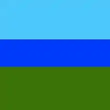 | Colors | Light blue, over dark blue, over green. |