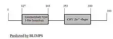Two domains were predicted by the program BLIMPS[6] to exist in the protein of which one of the domains contains a zinc finger domain.