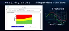 As widely reported in the scientific literature,[14] bone density is just one of the components of bone strength thus it only partially predicts bone fragility. In order to overcome this limitation, a novel parameter, Fragility Score, has been developed. Fragility Score evaluates bone microstructural features independently from BMD and it is based on the assumption that a fragile bone structure has microstructural features which, in turn, influence the spectral characteristics of the acquired ultrasound signal, being different from those reflecting a robust bone structure. Fragility Score is an adimensional parameter, ranging from 0 to 100, obtained by comparing the spectra of the acquired ultrasound signals with the spectral reference models obtained from patients who did, or did not, developed an osteoporotic fracture. This parameter has been validated through clinical studies and its accuracy has demonstrated a performance similar to DXA BMD.[15][16]