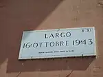 A number of stone plaques have been unveiled in the Roman Ghetto and at Tiburtina railway station to commemorate the arrest and deportation of the Jews of Rome in October 1943.[7]
