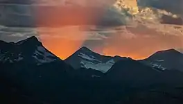 Rainbow Glacier is in Glacier National Park in the U.S. state of Montana. The glacier is situated immediately to the east of Rainbow Peak at an elevation between 8,500 feet (2,600 m) and 8,000 feet (2,400 m) above sea level.[3] The glacier covers an area of approximately 287 acres (1.16 km2) and has visible crevasses in satellite imagery. Rainbow Glacier has shown modest retreat compared to other glaciers in Glacier National Park, and lost just over 9 percent of its surface area between 1966 and 2005.[2]
