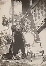 During the first years of her exile in Algeria, Ranavalona soon discovered the excitement of the socialite lifestyle among the elite of Algiers. She was regularly invited to parties, outings and cultural events and often hosted events of her own.[32] However, homesickness was ever-present and the impossibility of visiting Madagascar contributed to melancholy and boredom. She would frequently take long walks alone in the countryside, along the beach, or through the town to clear her mind and lift her spirits.[33] The queen was eager to see mainland France and especially Paris and repeatedly submitted formal requests for permission to travel. These were routinely denied until May 1901 when Ranavalona received the first of many authorizations to visit France. That very month, the queen moved into a small apartment in the 16th arrondissement of Paris near the Avenue Champs-Élysées and what is now the Place Charles de Gaulle, from which she visited the major sights of the city and was invited to numerous receptions, balls, shows and other events. She was widely received by high society with courtesy and admiration and was offered many gifts including a costly gown. During this first trip, Ranavalona visited the Palace of Versailles, was formally received at the Paris City Hall, and spent three weeks on vacation in Bordeaux. Finally, Ranavalona visited the beaches of Arcachon before exhausting her budget and boarding an Algeria-bound ship at Marseilles in early August.[34] The details of her visit attracted much attention from the Parisian press,[31] which expressed sympathy for the queen's fate and recrimination toward the French government for failing to provide a larger pension or accord her the consideration she deserved as a recipient of the Legion of Honor.[34]